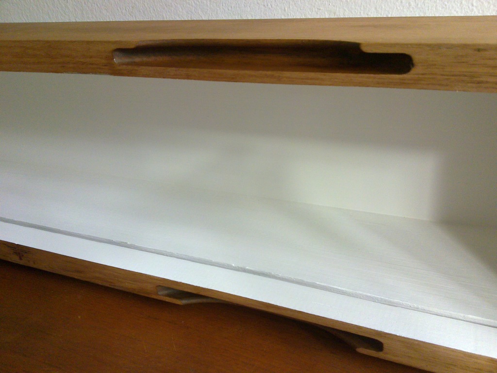putty was used to fill in damaged and irregular corner joints and small feet screwed to the base to float the whole thing.