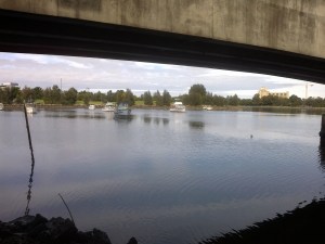 This is Kendrick Park where the Princess Highway crosses the Cooks River near Wolli Creek Station. A family rest stop in the park was enough time for my son and I to start trawling the muddy banks for building materials. I thought I was going pretty well with my very conservative little river Taxi when my son completely usurped me with his beautiful sculpture of a creation and christened it The Achievement, just to rub it in I am sure. With some rudder adjustment the Mud was able to cut across a slight on shore breeze and head down river towards Botany Bay (?). Unfortunately the wind had swung too far in by the time we tried to launch the Achievement and we never got to see her head out into the river.