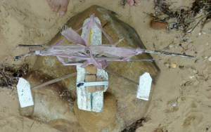 Clearly the craft are not posted in order of grace or chronology. This was a very early effort cobbled together with my son at Watamolla in the Royal National Park. Luckily the National Parks were underfunded just enough to leave them short staffed and there was always a little more debris washed up than they were able to collect. I suspect it is the same today. And opens up the philosophical discussion of environmental management. A like the native planting in human altered environments debate. The resources and energy thrown into constantly scraping the sand clean on the beaches is promoted/ spruked for funding as an environmental necessity. In truth it is more for the benefit of our desire for pristine tidiness or the idea of ‘original natural’ and a clear spot to lay out our towel. The seagulls and crabs don’t care what is on the sand and would probably prefer the pickings and shelter. The only real difference to the natural world is the blooming carbon footprint we generate from our incessant ‘cleaning up.’