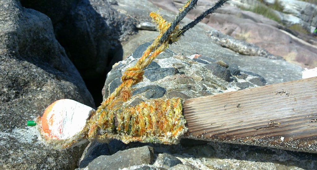 I sometimes find ropes or portions thereof washed up around the coast and bays. They can be beautiful in their own rite as a result of the colour and material combined with the wearing process of the sea and shore. In addition they often retain tactile clues to their previous life such as the way the ends are burned or taped off or the way they are stretched or cut or mechanically worn. The final layer that makes them a worthy addition to the blog is the retention of various working knots. Capturing the history, craft and physical dynamism of activities that have taken place somewhere on the water.