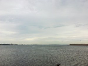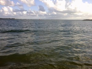 This slinky little craft had a build time of about 20 minutes. It started out being trialed on the little lake behind the dunes without any floats on the outriggers and was surprisingly quick. Assuming it would flip out on the bay some foam floats were added including a chunk under the nose. This had the effect of lifting the thin timber hull rite of the water and she took of like nothing built before on this blog. Skimming down the lake at a steady walking pace, so about 4 km per hour. A shell fragment was cut into the stern as a rudder, a take away food container for a rigid sail and a feather was added on the bow to help ensure the bow was aligned forward more quickly with the wind direction and buffer against tipping. You can see the wake coming off the bow and floats in these pictures.